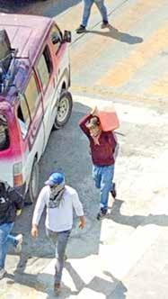 Y es que horas antes unos 50 normalistas con palos, bombas molotov, garrafas de gasolina y encapuchados, habían arribado a bordo de camiones del servicio público de pasaje que fueron secuestrados con sus respectivos choferes con anticipación en distintos puntos de la ciudad.