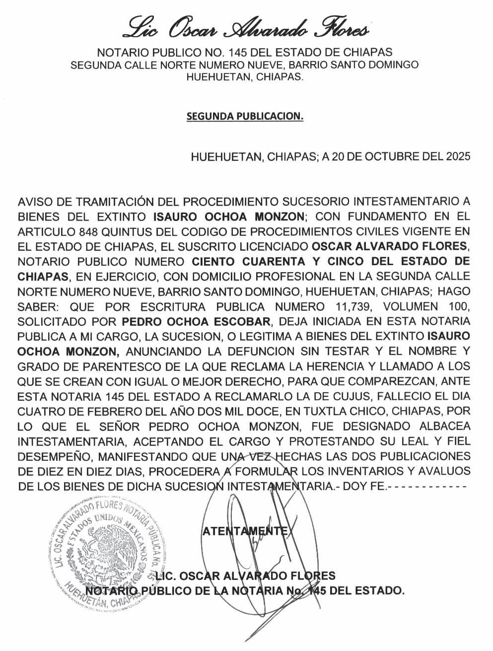 Tapachula de Córdova y Ordóñez, Chiapas, Lunes 03 de Noviembre de 2025