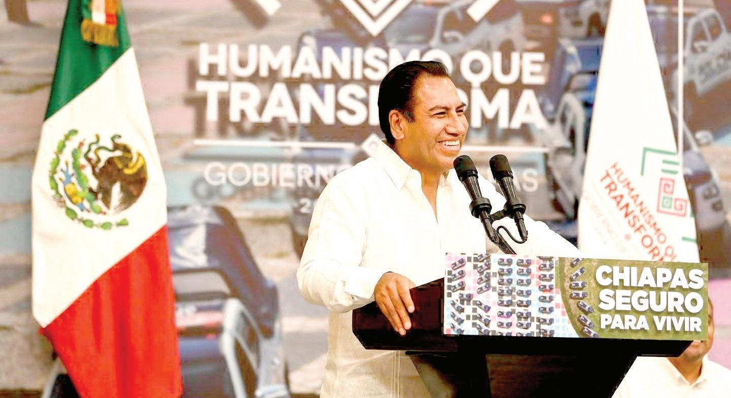 Durante la entrega de patrullas, equipamiento y uniformes a las corporaciones policiales de distintos ayuntamientos, el gobernador Eduardo Ramírez Aguilar destacó que estas acciones reafirman el compromiso del Gobierno de la Nueva ERA de fortalecer la seguridad en los municipios de Chiapas. Reconoció que los buenos resultados alcanzados se deben a la coordinación y cooperación establecida con las Alcaldesas y los Alcaldes, en favor de la paz y el Estado de Derecho.