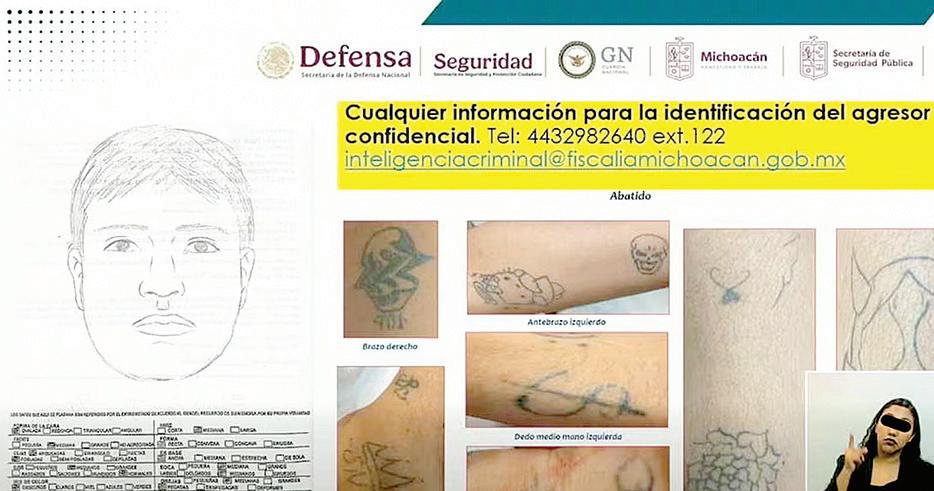 homicidio, el 16 de octubre, y en otro ataque, del 23 de octubre, donde murió otra persona. Precisó que, hasta esta mañana no se había identificado al agresor y tampoco había sido reclamado su cuerpo. Se presentó una serie de fotografías con los tatuajes que tiene. Durante la conferencia de prensa se presentaron una serie de videos en los que se ve al agresor moverse entre la multitud y acercarse al alcalde, hasta que queda a una corta distancia y le dispara. Posteriormente se ve a la gente corriendo y el hombre es abatido metros adelante. Señaló que en este homicidio participaron al menos dos personas, el autor material, que fue abatido en el lugar. Precisó que el ejecutor de los hechos se hospedó el día de los hechos en un hotel del centro de Uruapan. Sun
