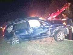 Alrededor de las 21:00 horas reportaron que a un costado de la Carretera Costera a la altura de una conocida empresa japonesa, un vehículo tipo compacto de color azul había sufrido una aparatosa volcadura y posteriormente lo había dejado abandonado.