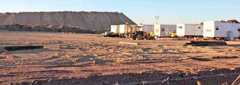 En la mina hay remolques de la Comisión Federal de Electricidad (CFE), la encargada del rescate de los cuerpos. Se mira también un cerro de tierra acumulada por la excavación.