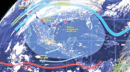 En contraste, un sistema de alta presión situado en niveles medios de la atmósfera, generará ambiente vespertino de cálido a caluroso en el occidente, centro y sur del territorio nacional; se pronostican temperaturas máximas de 35 a 40 grados Celsius en Chiapas, Colima, Guerrero, Jalisco, Michoacán, Nayarit, Oaxaca, Sinaloa y Sonora, y de 30 a 35 grados Celsius en Baja California Sur, Campeche, Quintana Roo, Tabasco, sur de Veracruz y Yucatán. Sun