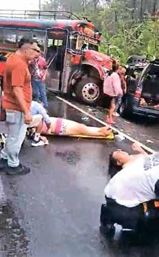 Escuintla, Guatemala 5 de Abril del 2026.– Una escena de tragedia y desesperación se vivió la tarde del pasado sábado sobre la ruta vieja que conecta Escuintla con la Ciudad de Guatemala, luego de un fuerte choque frontal entre un autobús de pasajeros y una combi, a la altura del kilómetro 49, en el sector conocido como piscinas San Luis.