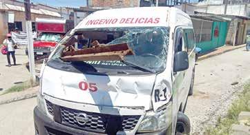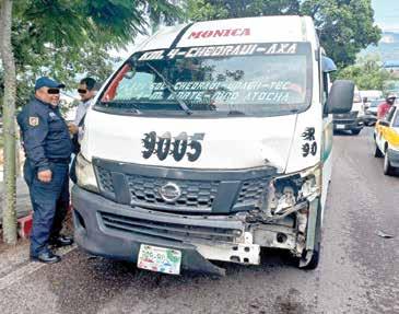 franjas verdes, placas de circulación del Servicio Público Local de la Ruta “20 de Noviembre”, conducida por Hirán Exson “N” de 27 años de edad, quien colisionó de frente contra un camioneta Toyota T-100, pickup de color verde, y placas de Chiapas, conducida por Pablo “N”, de 53 años de edad, mexicano, el que resultó ileso.