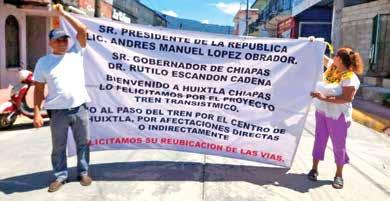 Asimismo, explicó que Huixtla hoy no es como hace unos 20 años. Ahora hay muchos vehículos y, sobre todo, motocicletas que circulan por toda la Ciudad, pero tienen que andar cruzando las vías en cada momento y todo eso constituye riesgos latentes de accidentes. Solo en Huixtla unas 500 personas van a ser afectadas directamente en sus casas, patios o negocios que tienen frente a las vías, y que ahora sin ninguna información, tratan de destruir para construir el nuevo proyecto del tren costero, añadió. Agregó que, así como se están manifestando en Huixtla,