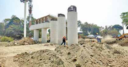 *En la zona se pueden constatar la construcción de los muros de carga, así como una parte de la súperestructura, y un tramo elevado de la superficie de rodamiento.