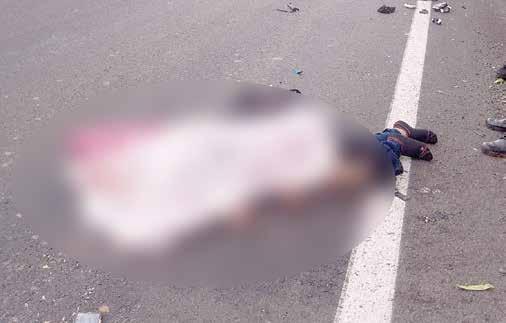 Junto a su cuerpo, que fue cubierto con una sábana, se encontraba la motocicleta siniestrada de color rojo y placas 10HKM8.