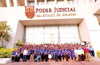 Para esta fotografía conmemorativa, se dieron cita en la fachada principal del Palacio de Justicia de Tuxtla Gutiérrez, el magistrado presidente del Tribunal Superior de Justicia y del Consejo de la Judicatura, Guillermo Ramos Pérez; la presidenta del Voluntariado, Josefa Sangeado Camacho; la y el consejero de la Judicatura, María Itzel Ballinas Barbosa y Omar Heleria Reyes; magistradas y magistrados del Pleno de Distrito, Rigoberto Bernardino Montoya García, Mirna Lucrecia Camacho Pedrero, Isela de Jesús Martínez Flores, Guillermo Horacio Esponda Orantes y Efrén Antonio Meneses Espinosa; la oficial mayor, Natividad Gallardo Ramos; la secretaria ejecutiva del Consejo de la Judicatura, Patricia Recinos Hernández; además de Magistradas, Magistrados, Juezas, Jueces, personal administrativo y jurisdiccional.