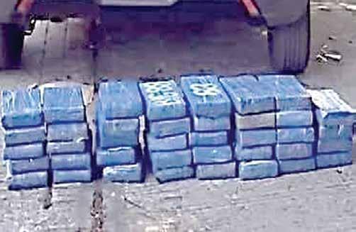 Tapachula, Chiapas; 07 de Marzo.- Un total de 39 paquetes tipo ladrillo con cinta de color azul, conteniendo en su interior