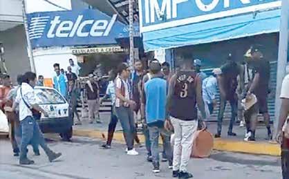 Tapachula, Chiapas; 7 de Octubre del 2023.Decenas de migrantes de diversas nacionalidades se enfrentaron a golpes contra empresarios, civiles y servidores públicos en el centro de la Ciudad, aunque por fortuna no hubo víctimas fatales y los lesionados no requirieron ser trasladados para su atención médica.