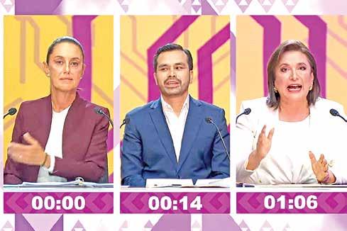 21:03 “Hasta la bolsa de tiempo se la quiere robar la candidata del PRIAN”, dice Sheinbaum al insistir que sigue fallando el cronómetro en el debate presidencial.