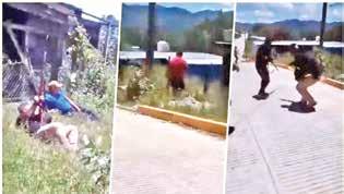 están bombardeando los verg#. Tenemos cuatro armas”. Las imágenes siguen con voces confusas y sonidos de celulares, que exhiben a hombres parapetados con sus armas a orillas de la carretera. Otro sujeto situado enfrente dispara por encima del techo de láminas de una casa y se oye a una voz decir “vámonos”. Sun