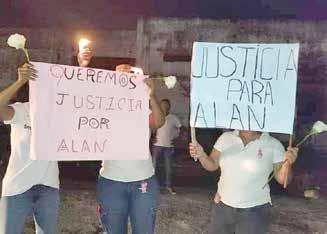 08 de octubre del 2022.- Funcionarios, familiares y amigos de Alan Fernando, colaborador de la 2a regiduría del municipio fronterizo de Suchiate, protestaron en la noche de este sábado en el centro de esa comunidad, por el artero asesinato del joven acaecido en la víspera.