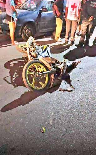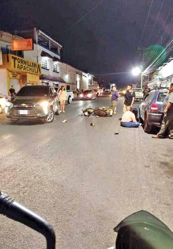 Desde el 911 Emergencias de Tapachula, se solicitó la pronta intervención de los cuerpos policiacos y de rescate, indicando que en el lugar en mención se había registrado un accidente automovilístico entre una camioneta Chevrolet Trax y una motocicleta en la que circulaban un joven y su compañera quienes resultaron golpeados, y fueron atendidos en primeros auxilios por los Paramédicos de la Cruz Roja Mexicana Delegación Tapachula, de la ambulancia Chis-188, a quienes dijeron responder a los nombres de Ricardo “N” de 28 años de edad, y a Kimberly “N”, de 30.