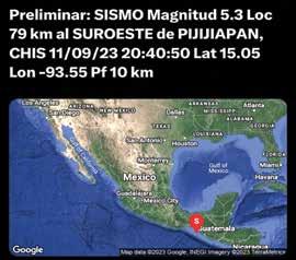 Sismo de 5.3 Grados Richter Sacude la Costa y Soconusco de Chiapas Ver Pág. 28 *Con Epicentro en Pijijiapan.