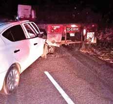 lesionada y daños materiales dejó como saldo un aparatoso accidente entre un Nissan Versa y una plataforma de un pesado tráiler, los hechos se dieron sobre el carretera Costera de Frontera Hidalgo a Suchiate a la altura de una conocida gasolinería, al lugar acudieron paramédicos de Protección Civil quienes atendieron a una persona, misma que fue valorada y trasladada rápidamente al Hospital General de Tapachula para su pronta atención médica.