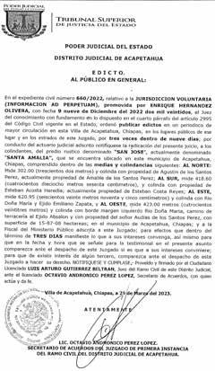Ahora, la línea limítrofe que debe regir entre los estados de Oaxaca y Chiapas partirá de sur a norte e iniciará en la barra de Tonalá, a los 16 grados de latitud norte en dirección noroeste hasta el Cerro del Chilillo, de ahí con dirección noroeste hasta el Cerro de La Jineta y de ahí con rumbo noroeste hasta el Cerro de los Martínez; cada uno con las especificaciones geográficas.