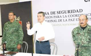 “En las últimas 96 horas correspondientes del martes 8 al viernes 11 de noviembre se registró saldo blanco en delitos de alto impacto, como homicidio doloso, feminicidio y secuestro, es un resultado que nos motiva a continuar redoblando esfuerzos para garantizar la paz y el orden en Chiapas”, declaró el jefe del Ejecutivo Estatal.