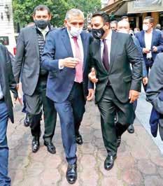 El secretario de Gobernación, Adán Augusto López Hernández, llegó tarde a la reunión, pero acudió a saludar a un par de simpatizantes que le pidieron tomarse una fotografía con él.