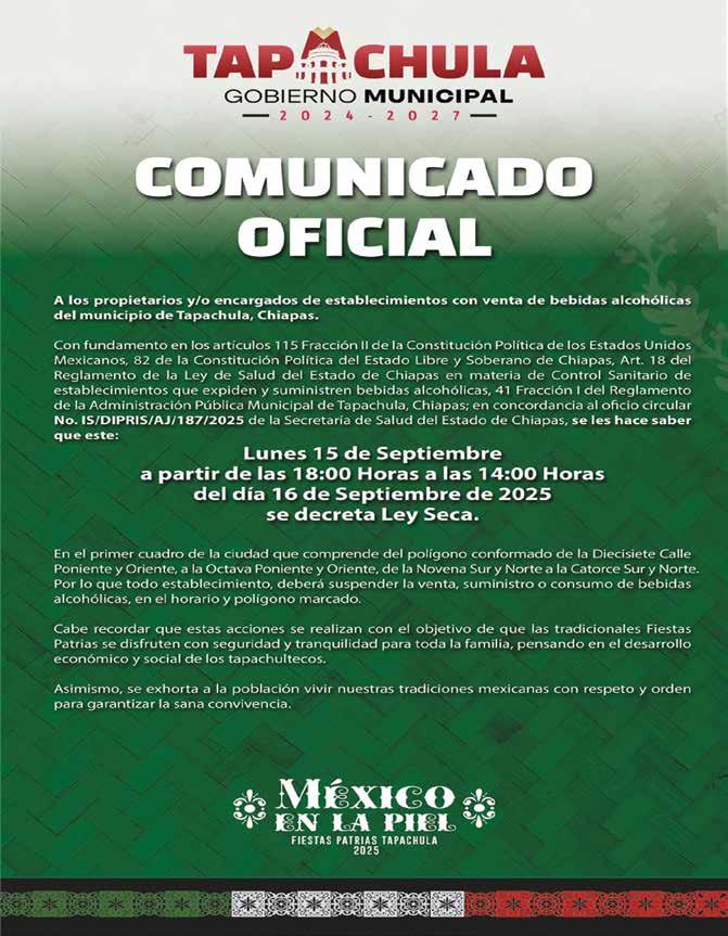 Av. Antonio D’amiano Cajas Manzana M Número 2. Fraccionamiento Insurgentes. Tapachula, Chiapas. C.P. 30700. www.elorbe.com @periodicoelorbe www.elorbe.com.mx