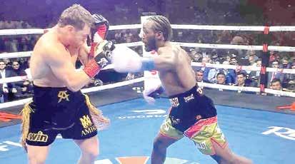 en un primer momento de estudio. Canelo es el que lleva la iniciativa ante un Crawford más defensivo que se sale de distancia con gran movimiento de piernas. En el cuarto asalto, Crawford llegó con grandes manos y puso en evidencia por momentos al mexicano. Canelo al final del combate llegó con un gran golpe al rostro. Crawford empieza a distanciarse en las puntuaciones, llega con más golpes a la cabeza, mientras Canelo busca más golpes al cuerpo. El estadounidense