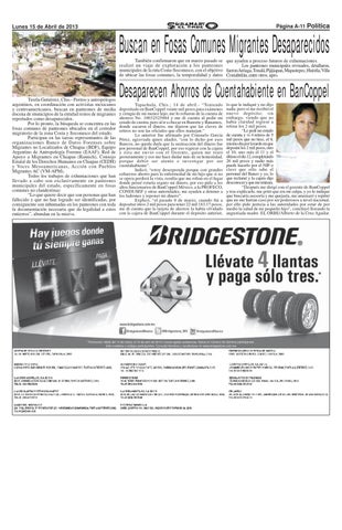 Buscan en Fosas Comunes Migrantes Desaparecidos También confirmaron que en marzo pasado se que ayuden a proceso futuros de exhumaciones. realizó un viaje de exploración a los panteones Los panteones municipales revisados, detallaron, municipales de la ruta Costa-Soconusco, con el objetivo fueron Arriaga, Tonalá, Pijijiapan, Mapastepec, Huixtla, Villa de ubicar las fosas comunes, la temporalidad y datos Comaltitlán, entre otros. apro.