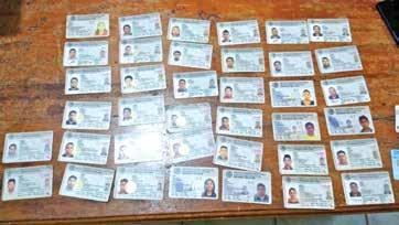 38 credenciales del INE, de las cuales se sabe que muchos en la zona las venden para el uso del tráfico de humanos.