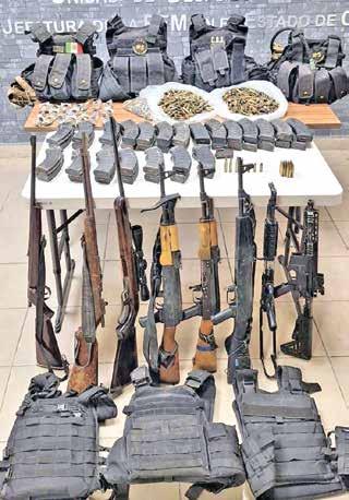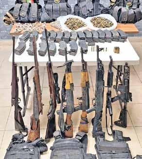Los hechos se registraron en la comunidad Joaquín Miguel Gutiérrez, donde como resultado de recorridos estratégicos, se logró el aseguramiento de tres armas largas tipo AK-47 calibre 7.62x39; dos armas largas Colt R-15 calibre .223; dos armas largas calibre .22 y un arma larga calibre .308. Asimismo, se aseguraron mil 324 cartuchos calibre 7.62x39, 23 cartuchos calibre .223 y cuatro cartuchos calibre .308, además de 42 cargadores para arma larga; además, se localizaron siete chalecos balísticos y 21 envoltorios que contenían hierba verde y seca con características propias de la marihuana.