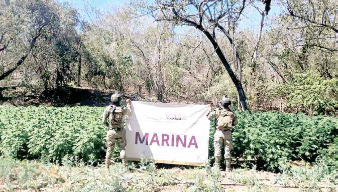 En un primer evento, durante recorridos terrestres en inmediaciones del municipio de La Cruz de Elota, los navales localizaron tres plantíos de marihuana, con un aproximado de 11 mil 280 plantas.