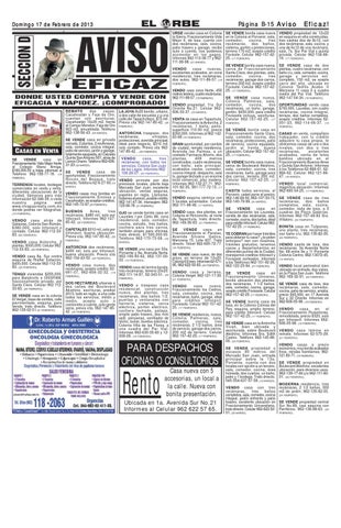 Domingo 17 de FFebrero ebrero de 2013 URGE vender casa en Colonia la Sierra, Fraccionamiento Vida Mejor II, de losa, cuenta con dos recámaras, sala, cocina, patio trasero y garage, recibo auto a cuenta, nos podemos acomodar en los pagos. Informes 962-113-38-77 y 962111-99-98. (01 MARZO). VENDO casa nuevas, excelentes acabados, en zona residencial, tres recámaras, dos autos. 962-111-89-57. (18 FEBRERO).