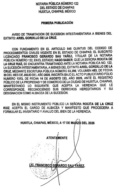 Tapachula de Córdova y Ordóñez, Chiapas; Martes 17 de Marzo de 2026