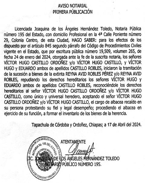 4ª. AV. NORTE #18 TEL 96262 50600 SUC.