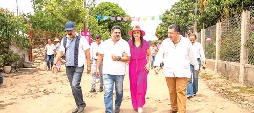 El síndico municipal Santiago Ancheita Calderón, el secretario general del Ayuntamiento, Roberto Fuentes Thomas, los regidores Gladiola Soto Soto, Alexis Gabriel Martínez Carbajal y vecinos del lugar acompañaron a la presidenta Rosy Urbina a develar la placa inaugural de la obra. Comunicado de Prensa