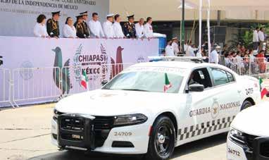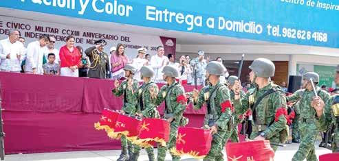 desfilaron ante el pueblo de Chiapas ocho banderas de guerra, mil 131 elementos pertenecientes al Ejército, Fuerza Aérea, Guardia Nacional y Marina Armada, 2 mil 283 integrantes de planteles educativos e instituciones civiles, 70 vehículos, cuatro cañones, 12 morteros, 15 motocicletas, nueve embarcaciones, cinco canes y 125 caballos.