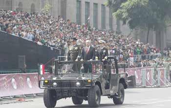 comandante Supremo de las Fuerzas y su comitiva abordaron el vehículo presidencial militar con el objeto de pasar revista a las agrupamientos castrenses, navales y de la Fuerza Aérea que participan en el Desfile. SUN