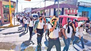 Tapachula, Chiapas; 17 de enero del 2023.Alumnos de la Escuela Normal Experimental “Ignacio Manuel Altamirano”, con sede en el municipio de Tuxtla Chico, marcharon este martes por las principales calles de esa comunidad fronteriza, por supuestas irregularidades en el plantel que van desde la imposición de maestros que ya fueron corridos de esa institución, la falta de transparencia en el manejo de los recursos económicos y la mala infraestructura.