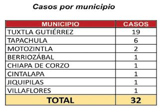 Los municipios que reportaron contagios nuevos son los siguientes: Tuxtla Gutiérrez, 19; Tapachula, seis; Motozintla, dos; y Berriozábal, Chiapa de Corzo, Cintalapa, Jiquipilas y Villaflores, un caso cada uno.