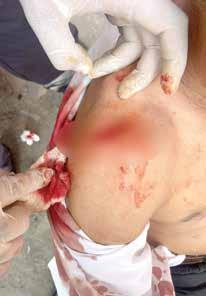 Esta persona fue identificada con el nombre de Alfredo “N” de 30 años de edad, de nacionalidad mexicana, quien tras ser valorado se informó que presentaba una lesión provocada por arma de fuego al parecer calibre (9mm), uno a la altura del pecho sobre el lado derecho casi en el hombro y el otro impacto en la mano derecha. Por lo de inmediato fue trasladado al Hospital Regional de Tapachula, se logró saber que durante el traslado el herido sufrió de paro cardíaco pero fue reanimado y llegó vivo al hospital. Sin embargo, al estar recibiendo atención médica lamentablemente falleció.