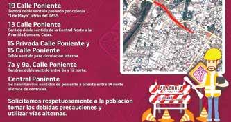 Lo que es la Novena Poniente se habilitará en doble sentido para desahogar lo que es el centro de vehículos particulares y no congestionar otras, para tomar la Costera. Para ingresar o salir del primer cuadro hacia la Costera, hay la alternativa de la Central Poniente hasta incorporarse a esa carretera o al revés.