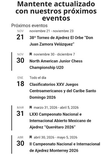 AL INSCRIBIRSE SE ACEPTA LAS CONDICIONES DE ESTA CONVOCATORIA. LOS CASOS NO PREVISTOS EN LA PRESENTE CONVOCATORIA SERÁN RESUELTOS POR EL COMITÉ ORGANIZADOR, CUYO FALLO SERÁ FINAL E INAPELABLE. PARA EFECTOS DE EMPAREJAMIENTO SE UTILIZARÁ LA LISTA DE ELO FIDE Y NACIONAL DE AJEDREZ ESTANDAR Y RÁPIDO, EN CASO DE QUE FUERAN DIFERENTES, SE CONSIDERARÁ EL MAS ALTO.