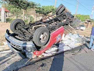 Cabe agregar que aproximadamente a unos 4 metros de la camioneta responsable, se encontraba sobre la guarnición un poste de madera de color verde, al parecer propiedad de la empresa Telmex, y a 2.5 metros, aproximadamente del primer poste se encontraba otro poste de madera de color café, ambos fueron desprendidos totalmente desde su base, quedando suspendidos únicamente por los cables.