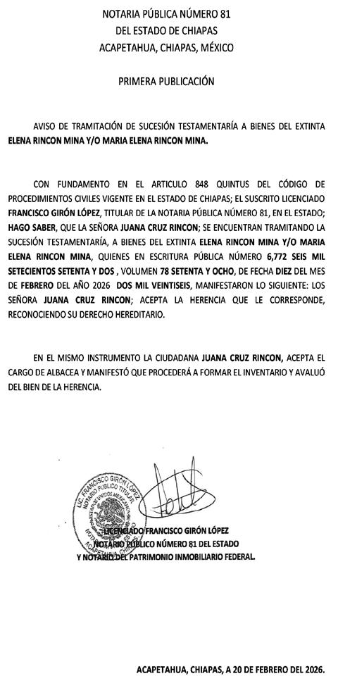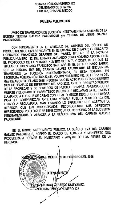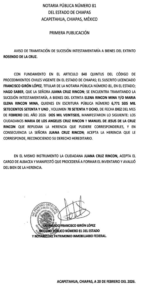 de Córdova y Ordóñez, Chiapas; Viernes 20 de Febrero de 2026