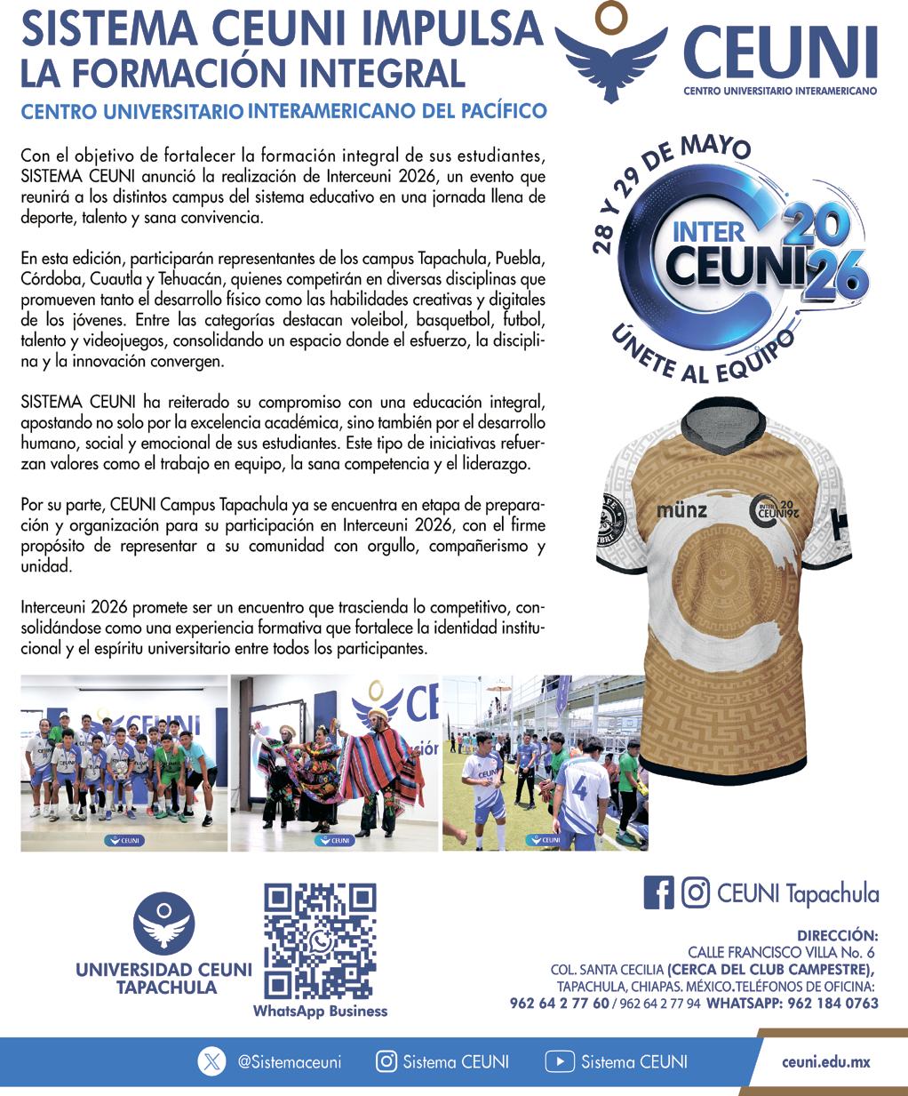 Antonio D’amiano Cajas Manzana M Número 2 Fraccionamiento Insurgentes Tapachula, Chiapas. C.P. 30700. Teléfonos: (962) 626 2241 y (962) 6262131. Imprenta y Distribuidor: Editora Zamora Cruz, S.A. de C.V. Av. Antonio D’amiano Cajas Manzana M Número 2 Fraccionamiento Insurgentes Tapachula, Chiapas C.P. 30700.