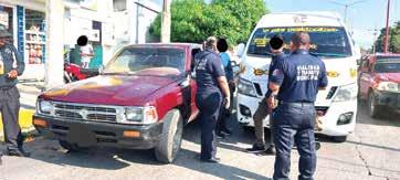 El chofer de la Ford Ranger se metió con todo y carro al área del estacionamiento del Aeropuerto Internacional donde fue detenido por personal de la Guardia Nacional, lugar donde el oficial que se hará cargo de deslindar las responsabilidades es de la Policía Federal de Proximidad División Caminos, comisionados a la Guardia Nacional. Los vehículos fueron remolcados por la grúa en turno. EL ORBE / Roberto Corado Mosqueda