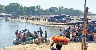 Cruzan el Río Para Participar en las Actividades Religiosas y Realizar Compras en Comercios Locales