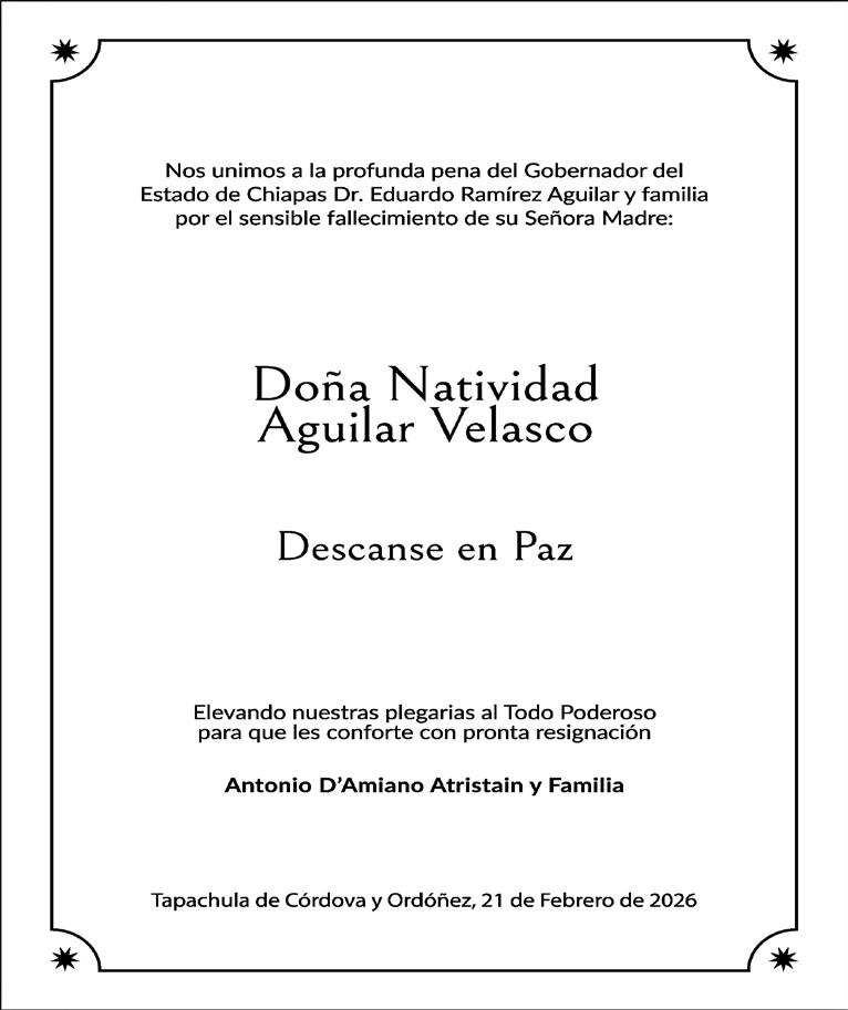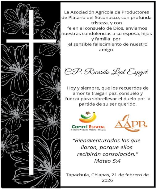 Expresamos nuestro más sentido pésame al C. Gobernador de Chiapas,