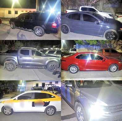 estupefacientes, así como 9 vehículos de las marcas Nissan Frontier, Mazda CX5, Jeep Rubicón, Toyota HEV XSE, Volkswagen Tiguan, Chevrolet Aveo, Chevrolet Aveo con características de transporte público en modalidad de taxi, Toyota Camry, Ford Expedition y una motocicleta marca Italika, con posibles indicios de relación en hechos ilícitos.