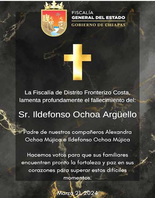 periodista y comunicador tapachulteco, Ildefonso Ochoa Argüello, persona excepcional que también será extrañada por el público, que por muchos años lo siguió a través de las páginas de EL ORBE. Ernesto López Quinteros