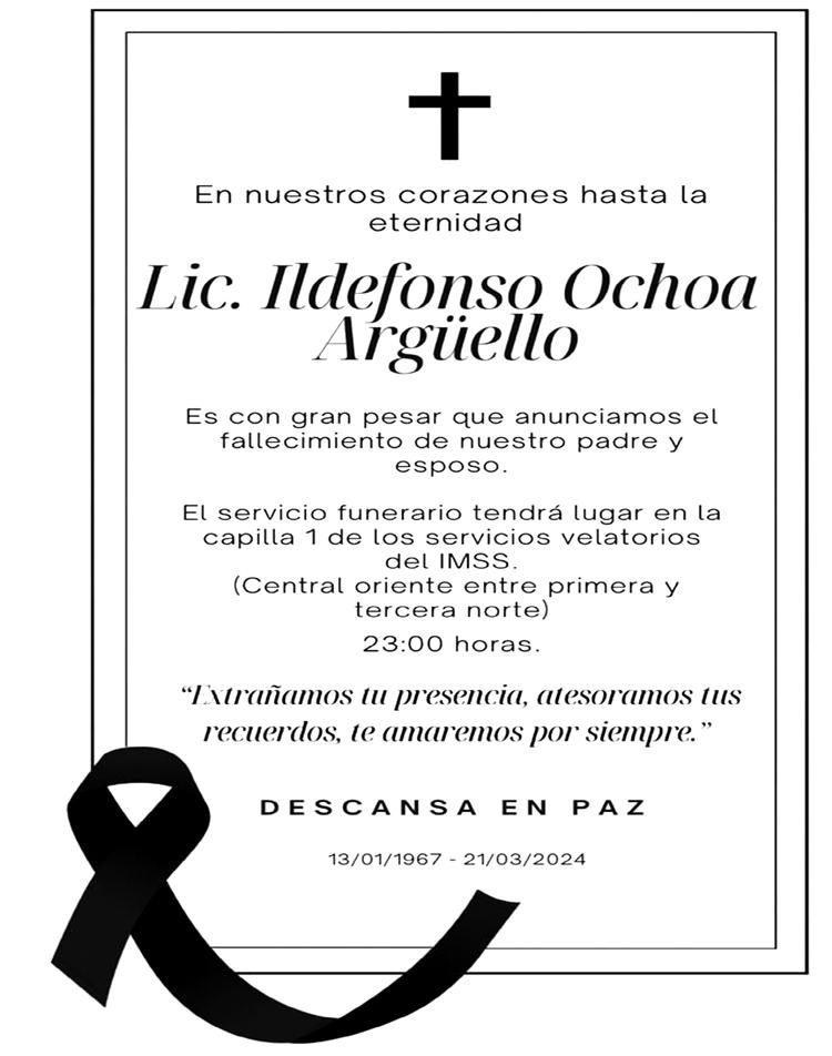 Tapachula, Chiapas; 21 de Marzo del 2024.- El reconocido periodista del rotativo EL ORBE, Ildefonso Ochoa Argüello, falleció este jueves por la tarde después de haber librado una dura batalla con una enfermedad que lo aquejaba, hasta que el Creador lo llamó a su lado.